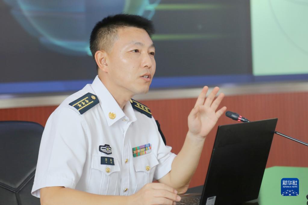 北部戰區聯(lián)指中心某保障隊副研究員李新進(jìn)行軍事理論授課(8月3日攝)。
