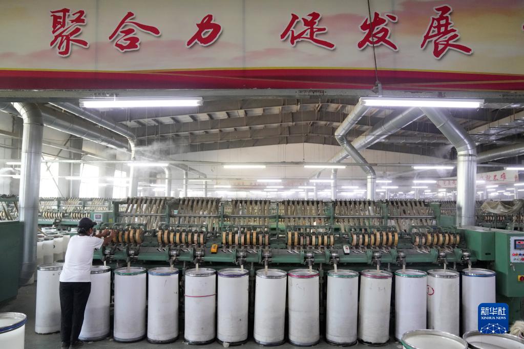 這是8月4日在穆棱經(jīng)濟開(kāi)發(fā)區黑龍江紅豆杉亞麻紡織有限公司車(chē)間拍攝的生產(chǎn)場(chǎng)景。
