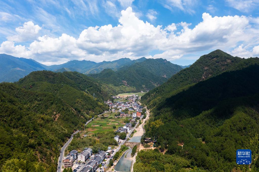 8月7日,空中俯瞰杭州市臨安區龍崗鎮龍井村(無(wú)人機照片)。