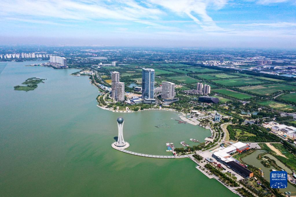 8月7日拍攝的武進(jìn)區西太湖(滆湖)攬月灣景區(無(wú)人機照片)。
