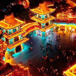 西安周至水街煙火巷子夜景(8月6日攝,無(wú)人機照片)。