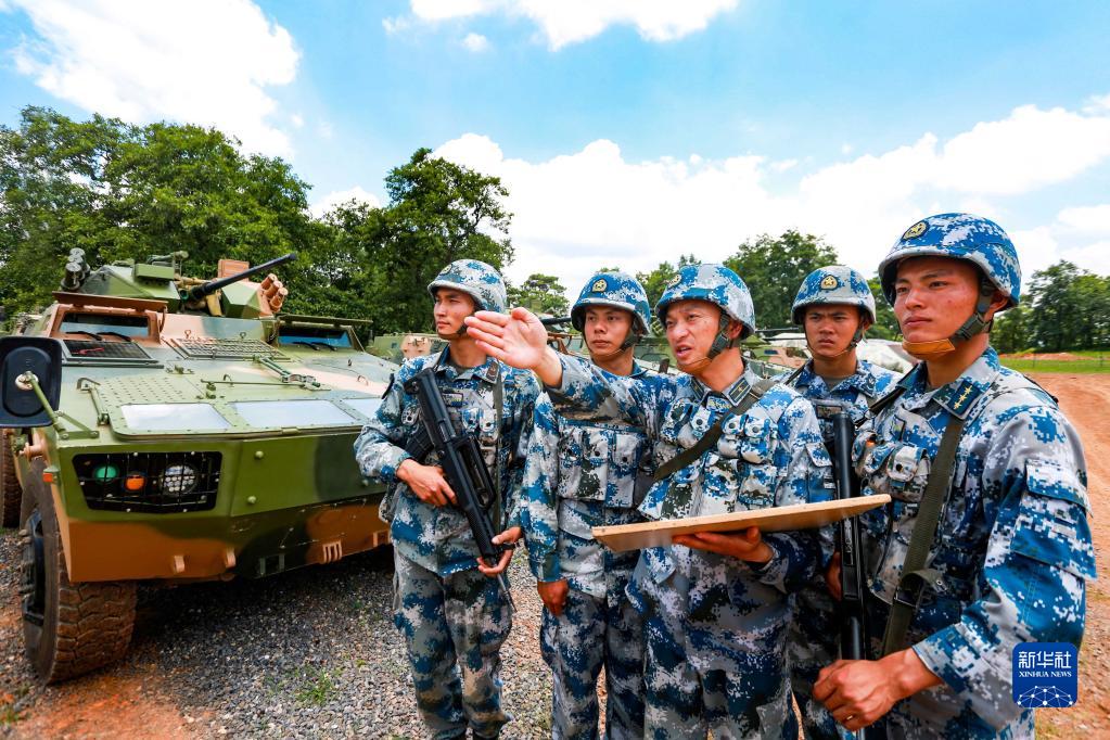 空降兵某旅二營(yíng)政治教導員余海龍(中)帶領(lǐng)官兵進(jìn)行識圖訓練(2022年7月11日攝)。新華社發(fā)(張朋倍 攝)
