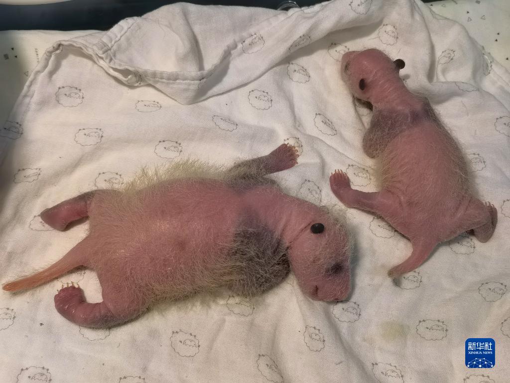 這是8月4日拍攝的海歸大熊貓“二順”產(chǎn)下的大熊貓雙胞胎幼仔。