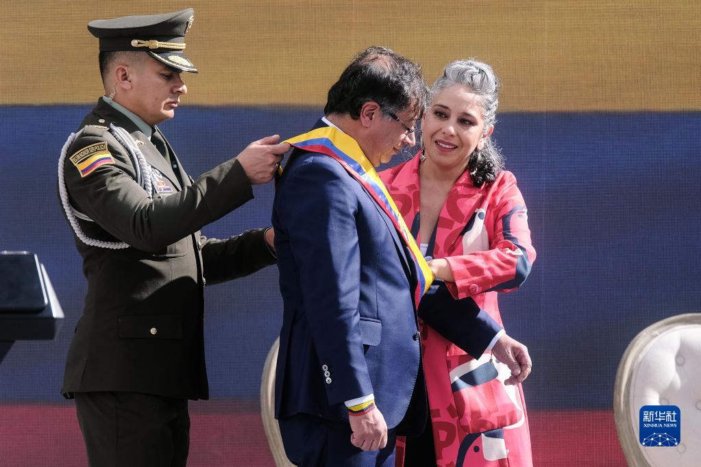 哥倫比亞當選總統古斯塔沃·佩特羅7日在首都波哥大玻利瓦爾廣場(chǎng)宣誓就職。