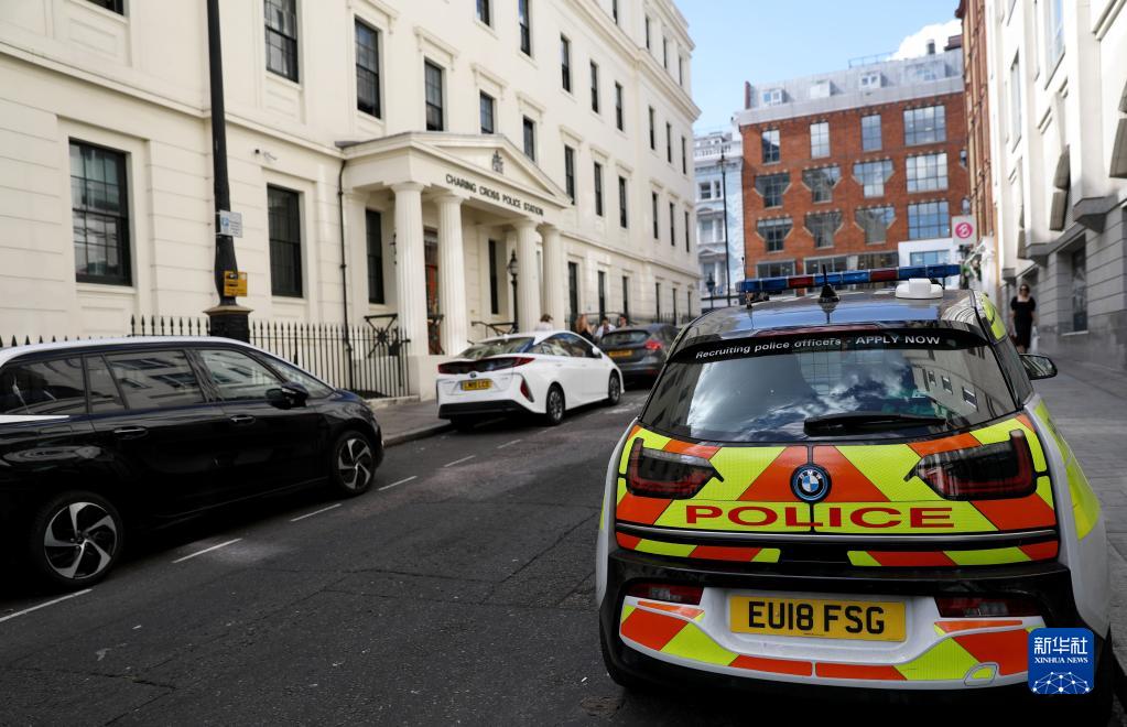 8月8日,在英國倫敦,一輛警車(chē)停在警察局門(mén)口。