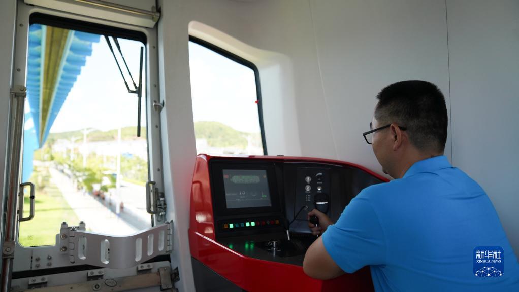 8月9日, “紅軌”試驗線(xiàn)列車(chē)司機在駕駛列車(chē)。