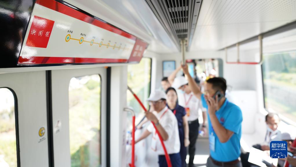 8月9日,乘客在試乘 “紅軌”試驗線(xiàn)列車(chē)。