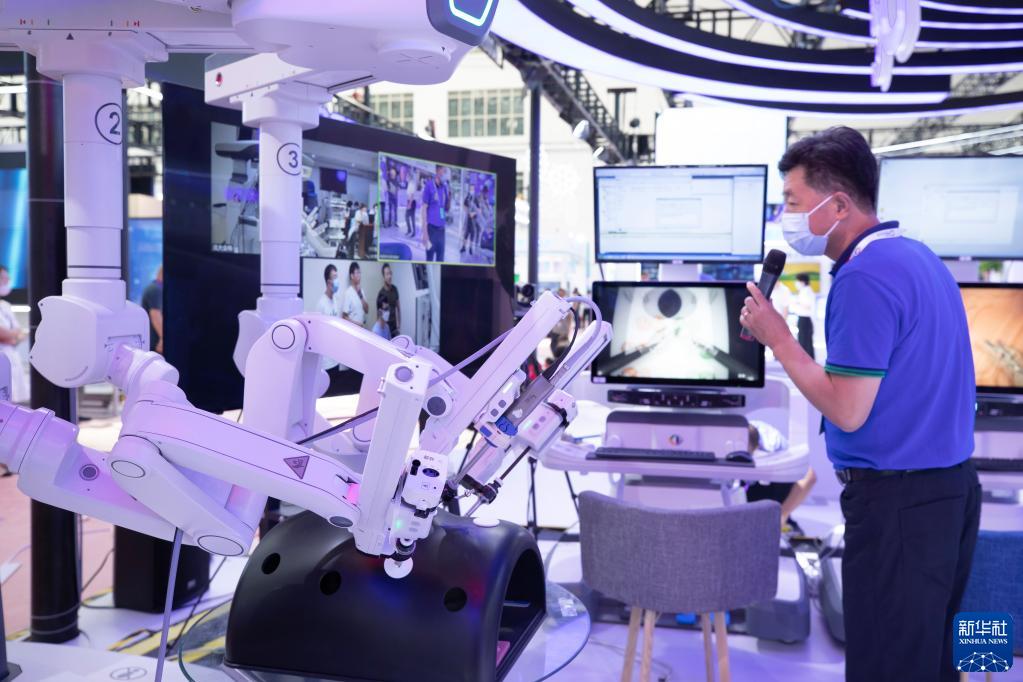8月9日,在龍江數字經(jīng)濟展區,工作人員調試設備。
