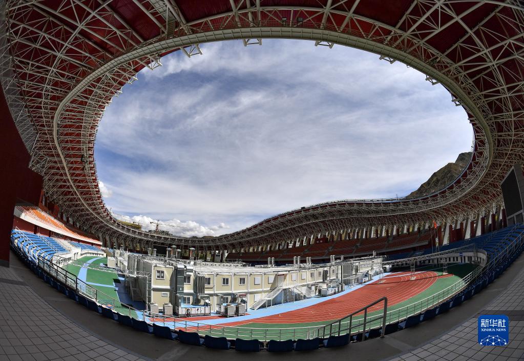 位于拉薩市柳梧新區拉薩市群眾文化體育中心內的方艙醫院(8月9日攝)。