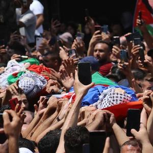 8月9日,人們在約旦河西岸城市納布盧斯參加被以色列軍隊打死的巴勒斯坦人的葬禮。