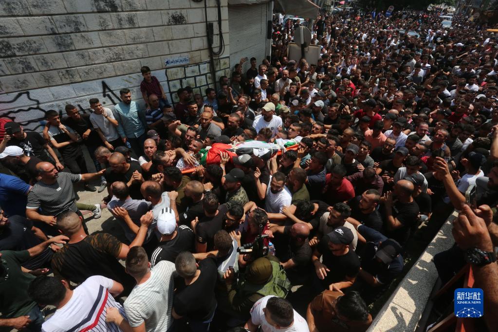8月9日,人們在約旦河西岸城市納布盧斯參加被以色列軍隊打死的巴勒斯坦人的葬禮。