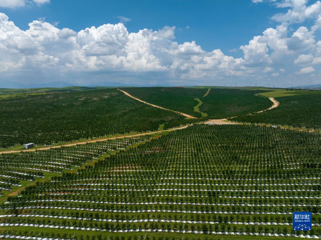 這是位于云南蒙自市草壩鎮的五八農業(yè)軟籽石榴種植基地(8月9日攝,無(wú)人機照片)。