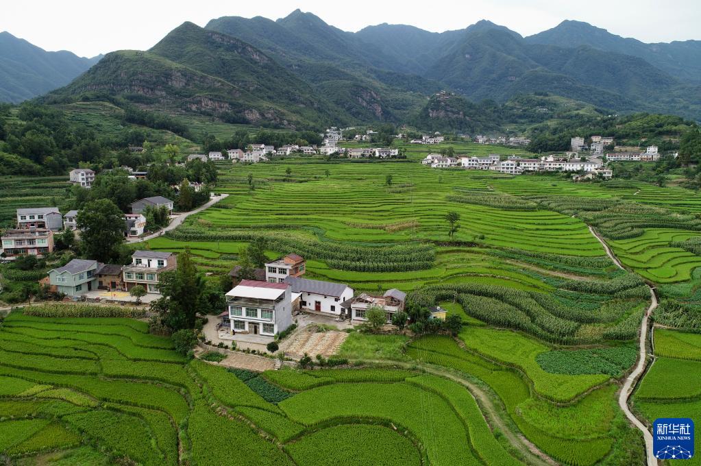 這是8月9日拍攝的陜西省漢陰縣漩渦鎮鳳堰古梯田一景(無(wú)人機照片)。