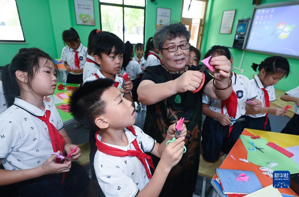 8月10日,湖州市吳興實(shí)驗小學(xué)的學(xué)生在“博學(xué)課堂”上學(xué)習剪紙。 新華社記者 徐昱 攝