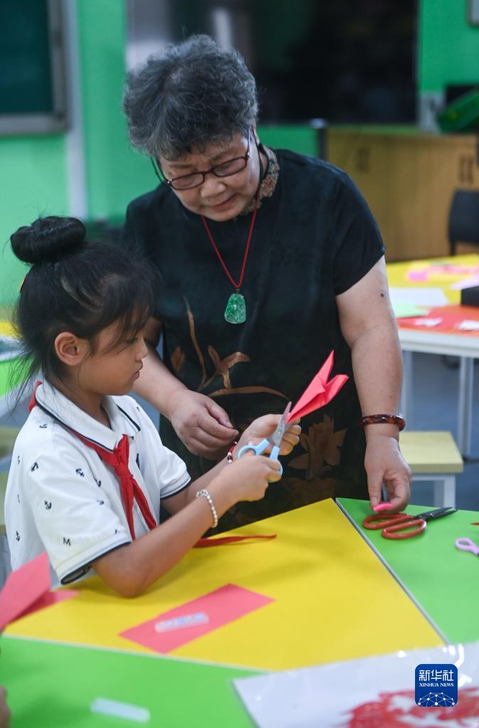 8月10日,湖州市吳興實(shí)驗小學(xué)的學(xué)生在“博學(xué)課堂”上學(xué)習剪紙。 新華社記者 徐昱 攝