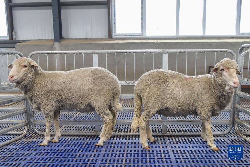 這是8月6日在新疆綿羊分子育種試驗基地拍攝的基因編輯的短尾細毛羊(左)和野生型長(cháng)尾細毛羊。新華社記者 丁磊 攝