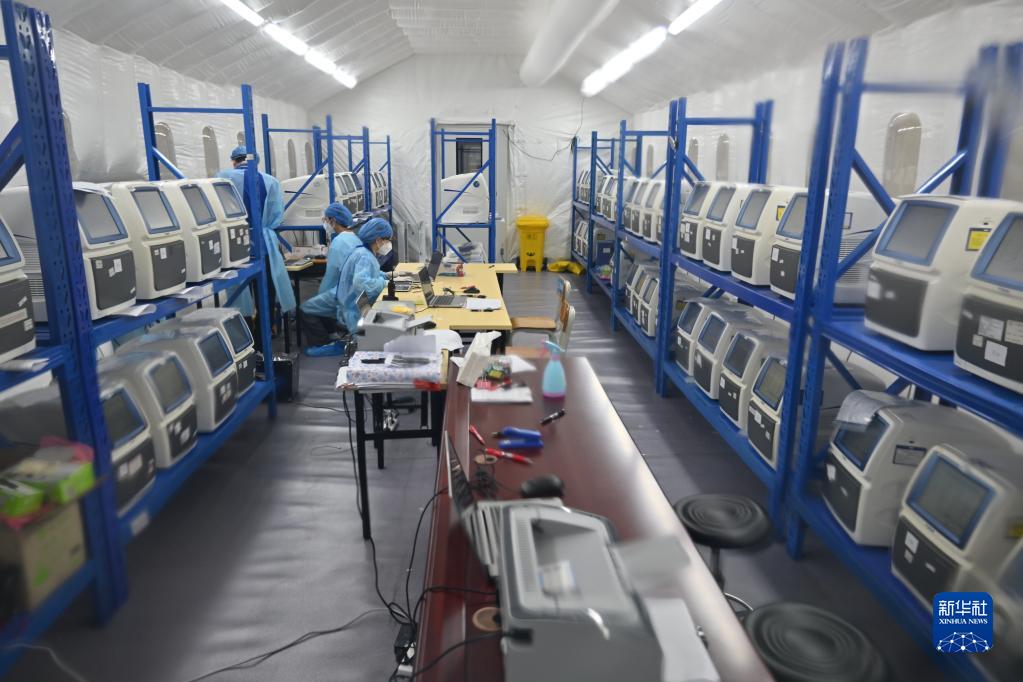 8月11日,廣東省援海南三亞核酸檢測隊的醫護人員在進(jìn)行核酸檢測工作。