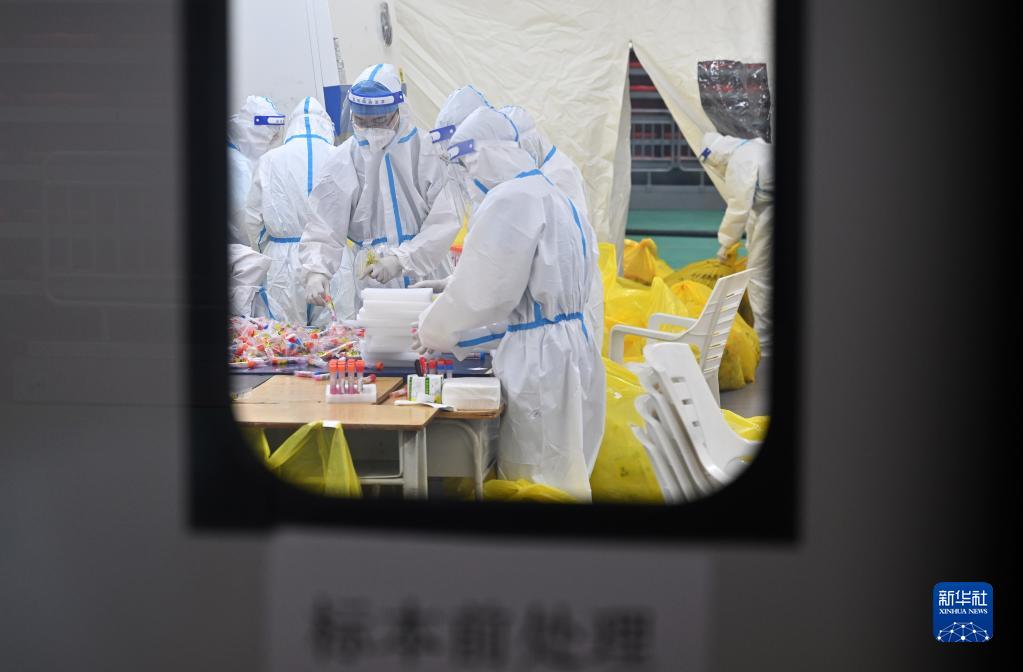 8月11日,廣東省援海南三亞核酸檢測隊的醫護人員在進(jìn)行核酸檢測工作。
