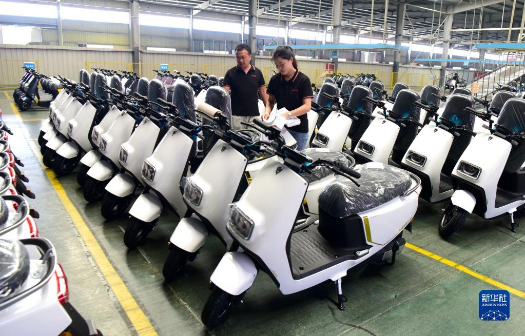 8月11日,工人在河南省汝南縣立馬新能源電動(dòng)車(chē)產(chǎn)業(yè)園生產(chǎn)線(xiàn)上忙碌。