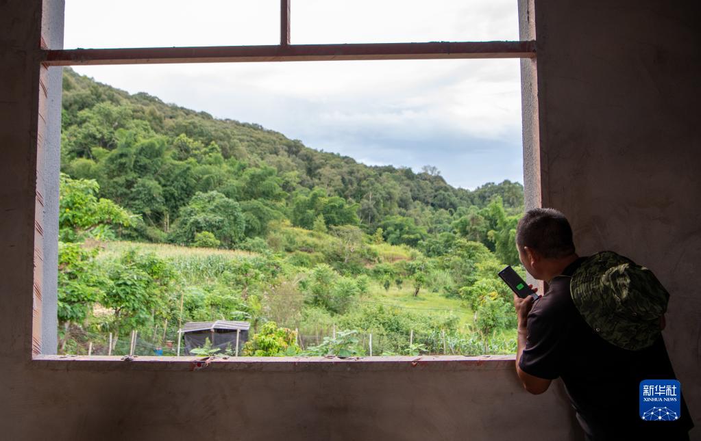 刁發(fā)興在上報象群動(dòng)向(8月1日攝)。新華社記者 江文耀 攝