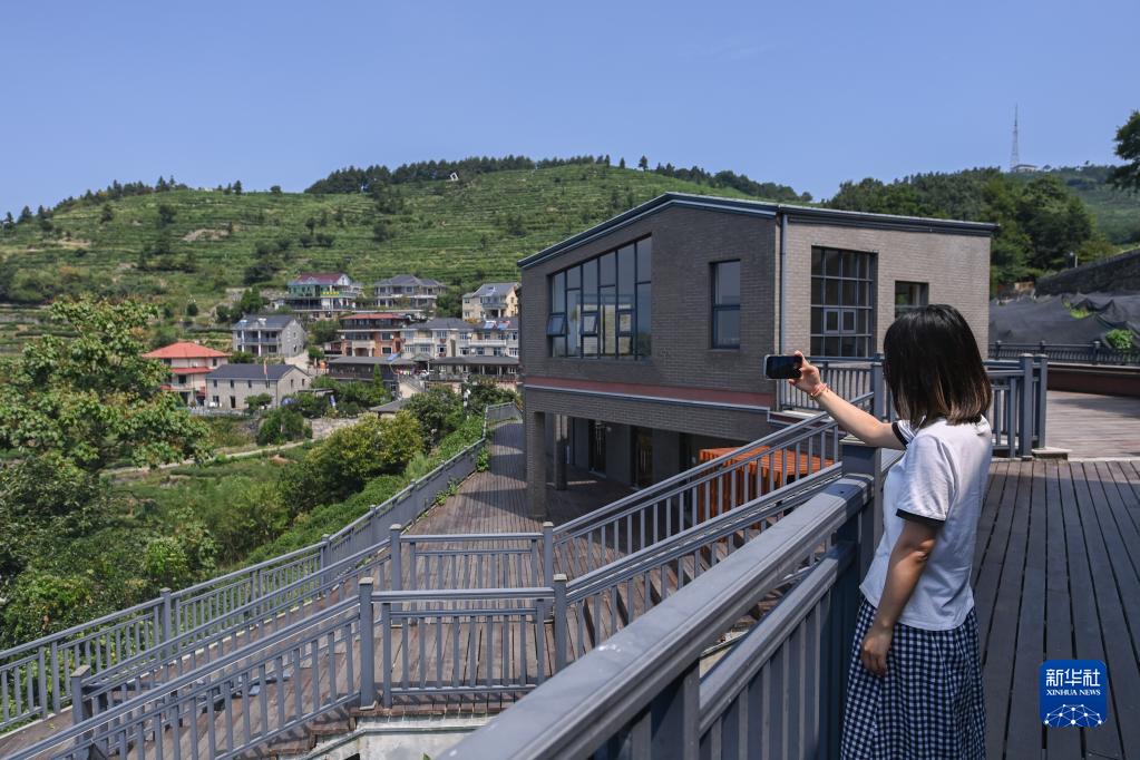 8月12日,游客在安頂村的云霧茶吧外拍攝鄉村風(fēng)景。
