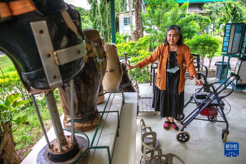 8月6日,在泰國南邦府“亞洲象之友”大象醫院,蘇賴(lài)達·薩瓦拉介紹為大象制作的假肢。