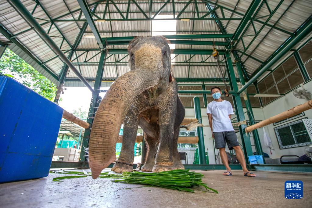 8月6日,在泰國南邦府“亞洲象之友”大象醫院,一頭受傷的大象在進(jìn)食。