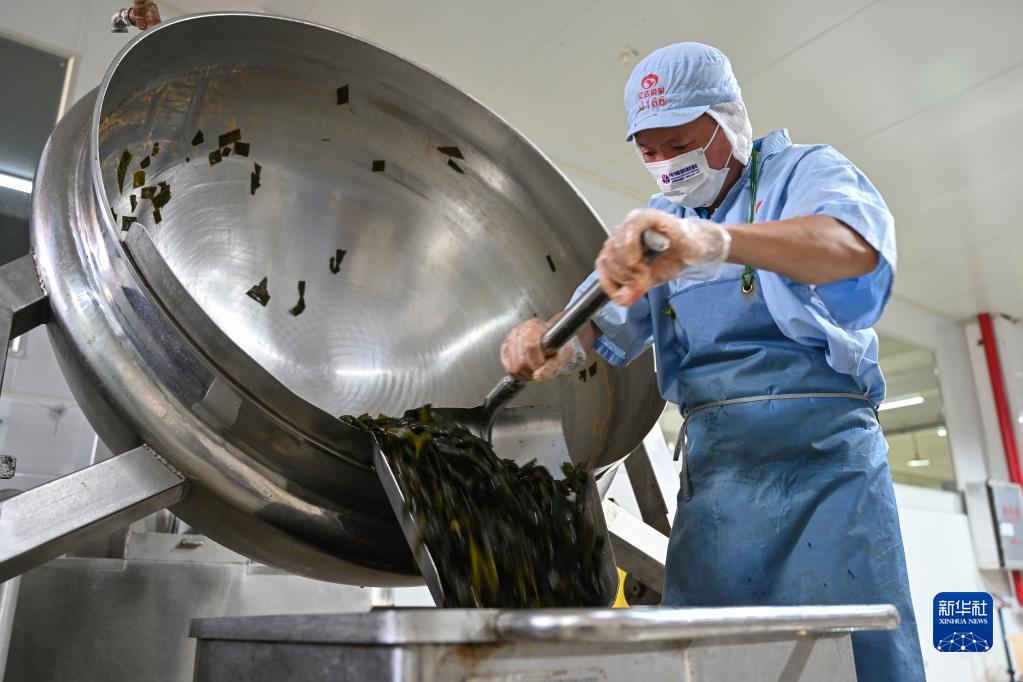8月12日,在連江縣一家海帶食品加工企業(yè)車(chē)間,工人在加工海帶。