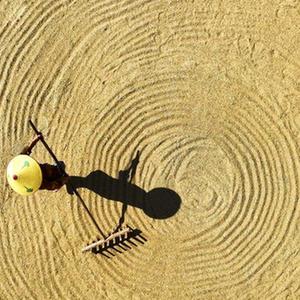 8月13日,在常寧市板橋鎮長(cháng)沖鋪村,村民晾曬稻谷(無(wú)人機照片)。