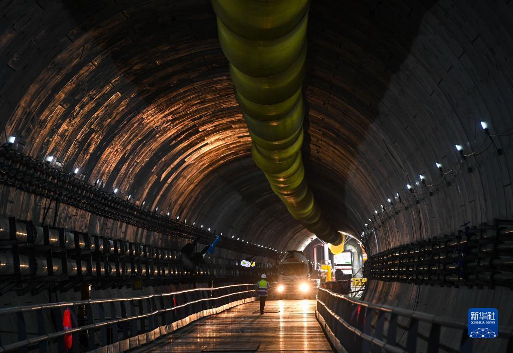 8月10日,施工人員行走在深江鐵路珠江口隧道已完成段。