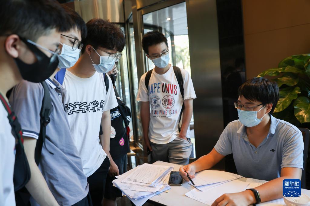 8月14日,準備返程的旅客在??谑旋埲A區一酒店大堂登記離島信息。