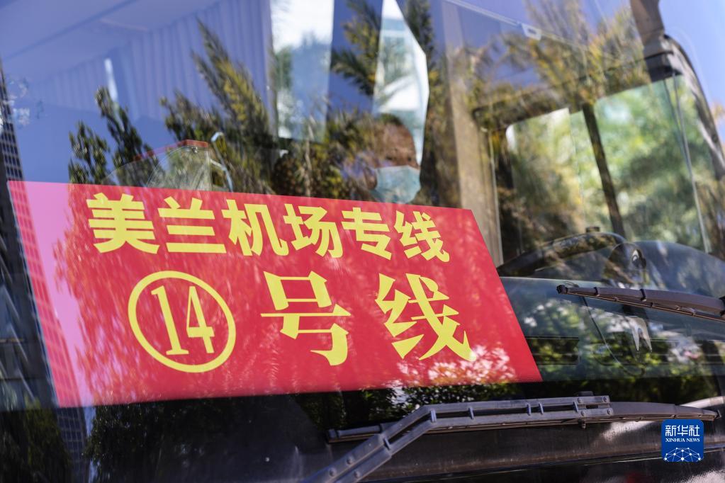 8月14日,準備返程的旅客乘坐前往??诿捞m機場(chǎng)的大巴車(chē)。