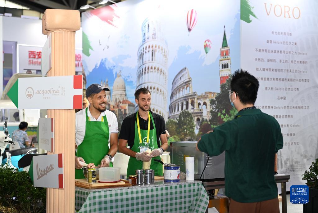 8月14日,參觀(guān)者在西安國際會(huì )展中心國際館意大利展區了解意大利美食。