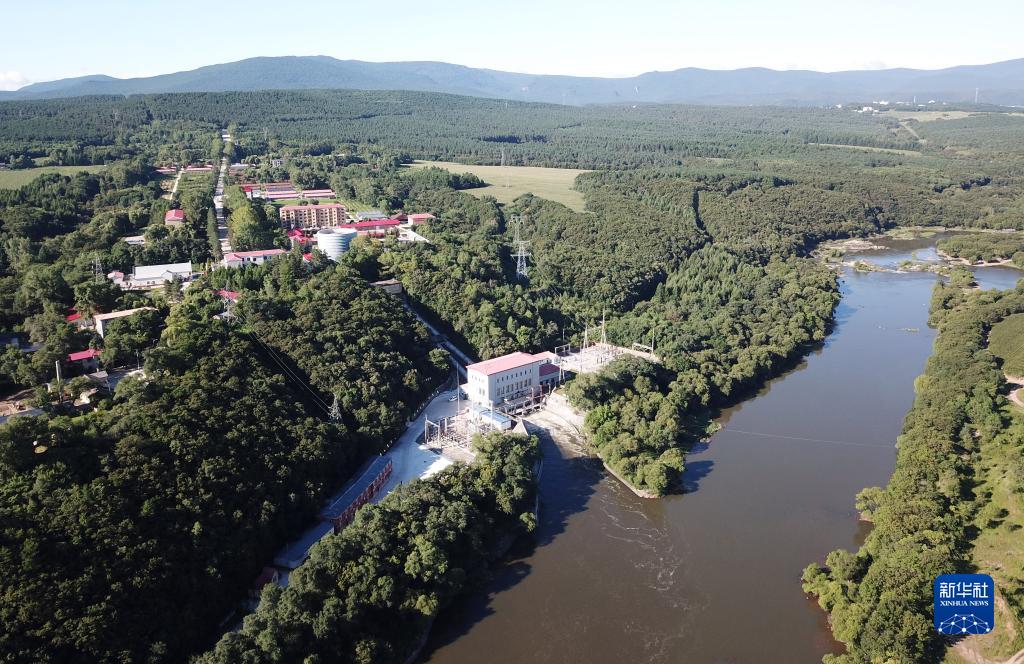 這是8月12日拍攝的坐落于牡丹江畔的鏡泊湖發(fā)電廠(chǎng)廠(chǎng)區局部(無(wú)人機照片)。