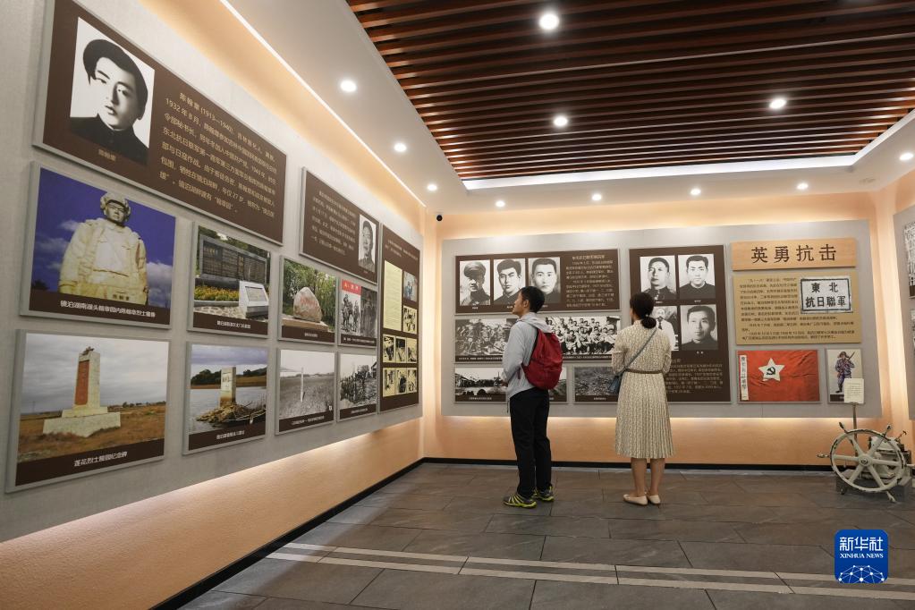8月11日,在鏡泊湖發(fā)電廠(chǎng)的紅色主題展館內,參觀(guān)者了解東北抗聯(lián)在發(fā)電廠(chǎng)周邊組織戰斗情況。