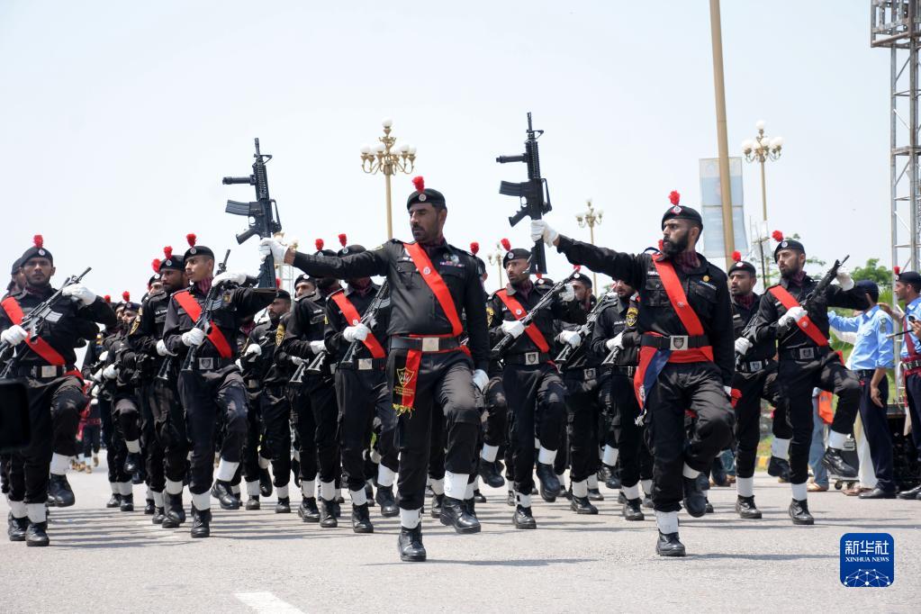 8月13日,巴基斯坦警務(wù)人員在拉合爾參加獨立日慶?;顒?dòng)。