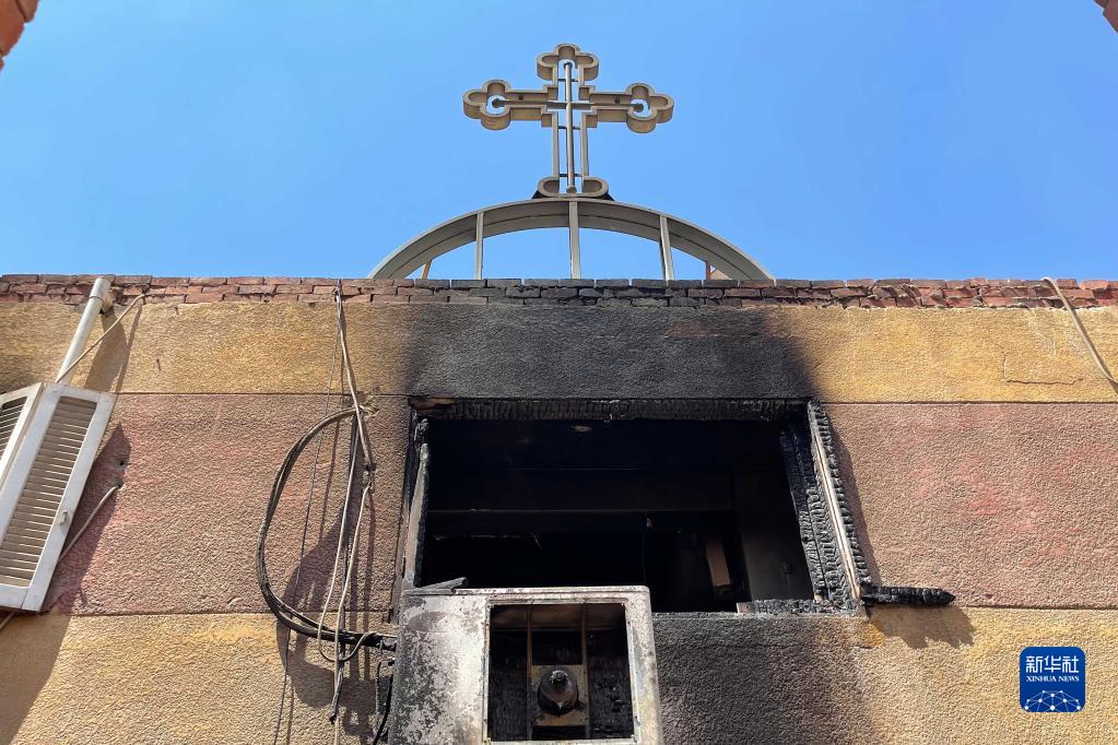 這是8月14日在埃及吉薩省拍攝的火災中損毀的教堂窗戶(hù)。
