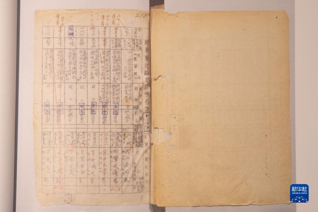 這是侵華日軍第七三一部隊罪證陳列館首次公開(kāi)的《關(guān)東軍化學(xué)部留守名簿》(8月13日攝)。