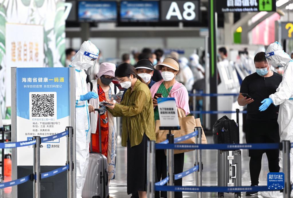 8月15日,乘客在三亞鳳凰國際機場(chǎng)核驗核酸檢測陰性證明。
