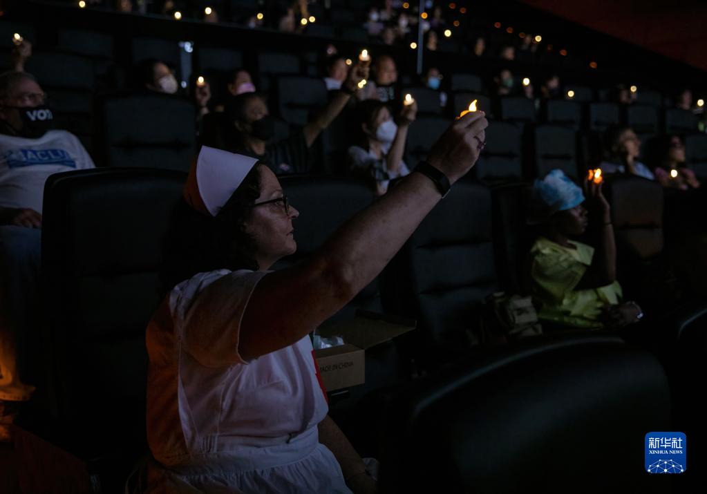 8月14日,在美國得克薩斯州達拉斯市舉行的世界“慰安婦”紀念日活動(dòng)上,觀(guān)眾在影片結束時(shí)點(diǎn)亮并舉起手中的蠟燭。新華社發(fā)(金新 攝)