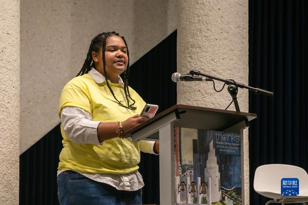 8月14日,在美國得克薩斯州達拉斯市舉行的世界“慰安婦”紀念日活動(dòng)上,一名高中生進(jìn)行詩(shī)朗誦。新華社發(fā)(金新 攝)