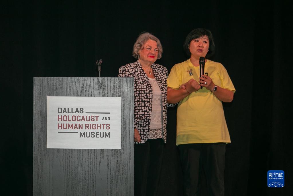 8月14日,在美國得克薩斯州達拉斯市舉行的世界“慰安婦”紀念日活動(dòng)上,活動(dòng)組織者之一樸申敏(右)和納粹大屠殺幸存者羅希安·策納參加活動(dòng)。新華社發(fā)(金新 攝)