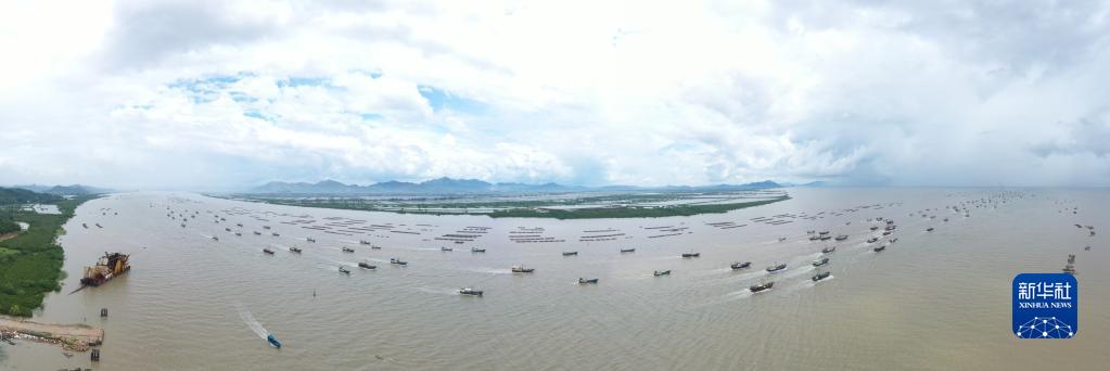 8月16日,漁船駛向大海(無(wú)人機照片)。