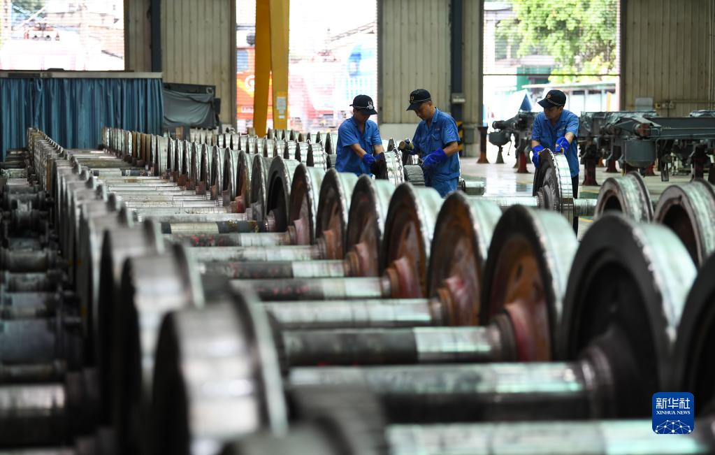 8月16日,廣州機務(wù)段職工在對機車(chē)車(chē)輪進(jìn)行探傷作業(yè)。