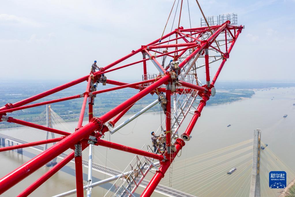 當日,位于安徽省銅陵市樅陽(yáng)縣的長(cháng)江跨越塔北塔封頂,標志著(zhù)“西電東送”重點(diǎn)工程白鶴灘至浙江±800千伏特高壓直流輸電工程安徽段長(cháng)江跨越塔全部組立完成。