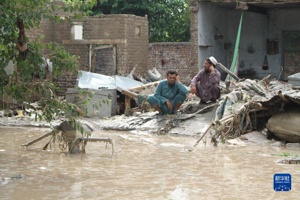 8月15日,人們在阿富汗楠格哈爾省觀(guān)察受災情況。
