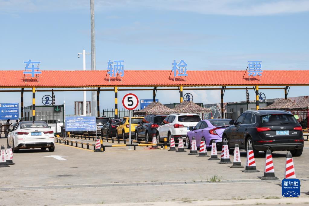 8月16日,自駕車(chē)輛在??谛潞8叟抨牭却龣z票。