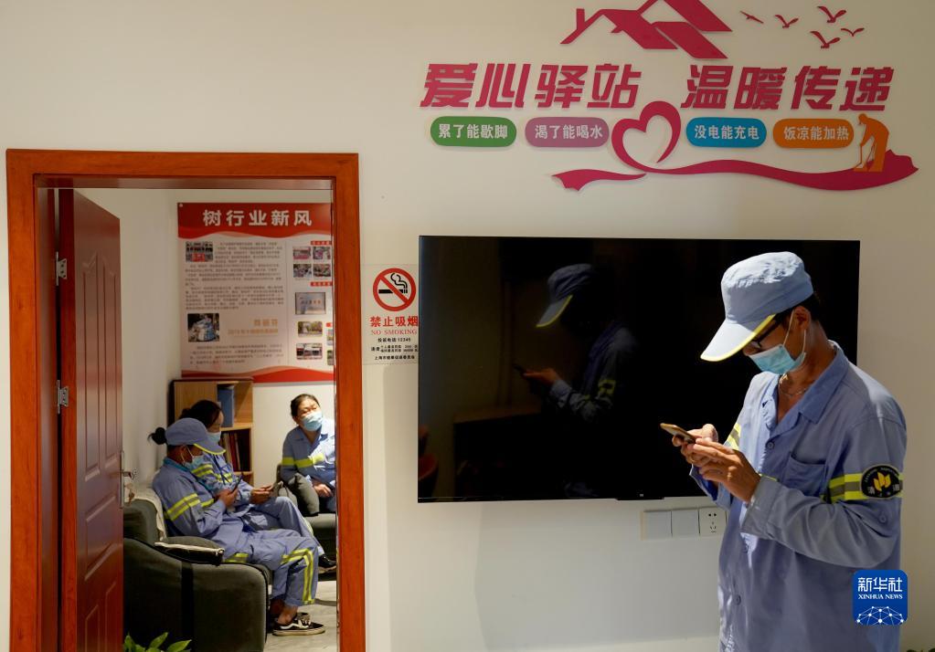 這個(gè)愛(ài)心驛站是上海虹口城市建設發(fā)展有限公司為一線(xiàn)員工打造的避暑休息站,保障戶(hù)外勞動(dòng)者安然度夏。
