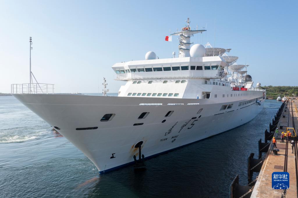 中國遠望5號船16日??克估锾m卡南部漢班托塔港,進(jìn)行物資補給。中國駐斯大使戚振宏和斯政府官員、中資機構代表等在碼頭迎接。