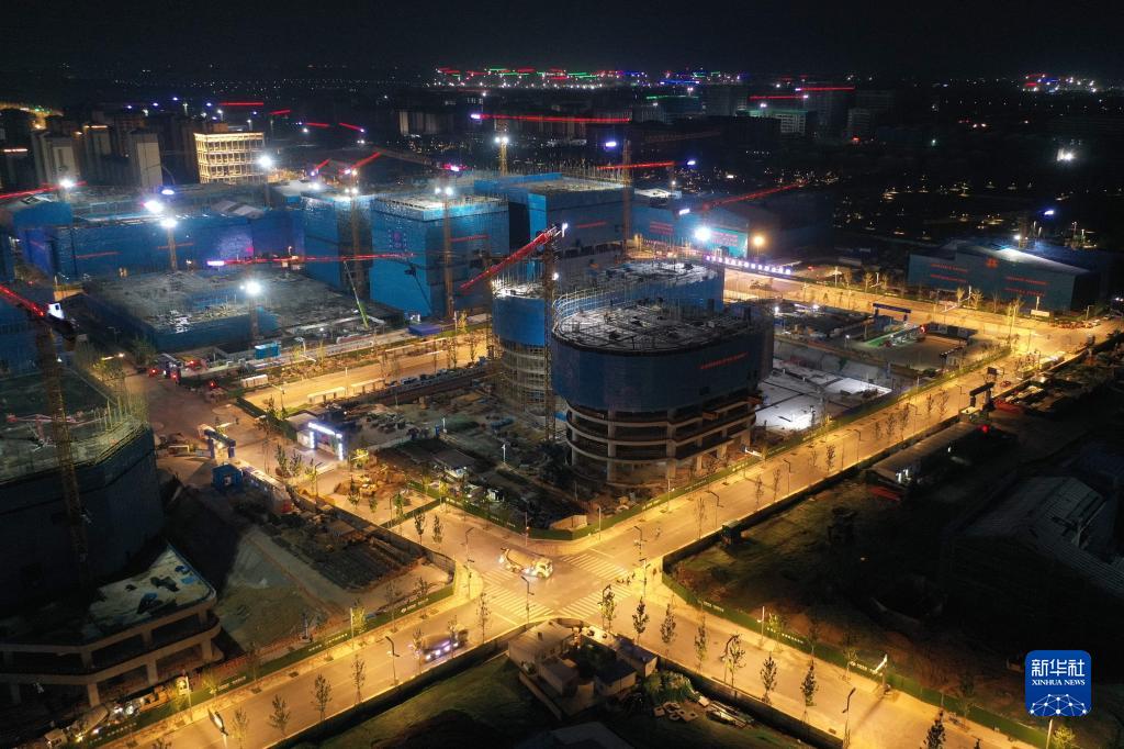河北雄安新區容東片區雄安·電建智匯城建設項目夜景(8月17日攝,無(wú)人機照片)。